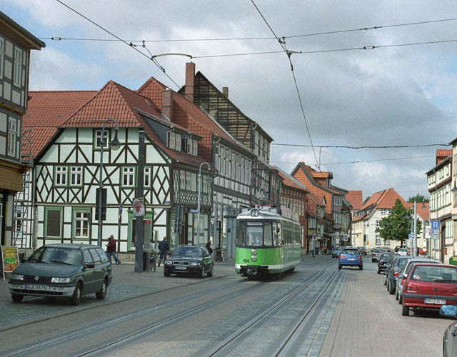 Halberstadt still has much to offer the visitor. Despite heavy war damage and years of decay, many of its fine semi-timbered houses survive (although some are in a poor state). In the author’s opinion, the historic atmosphere of the centre and the quality of its architecture is on par if not more recommendable than that of other towns in the region, even if the latter make more of their tourist potential. For steam enthusiasts, the town is an ideal starting point to explore the Harz narrow gauge railways, two stations of which, Wernigerode and Quedlinburg, are both less than 20 minutes away by regional train. At the far end of this system lies another small tramway town, Nordhausen.