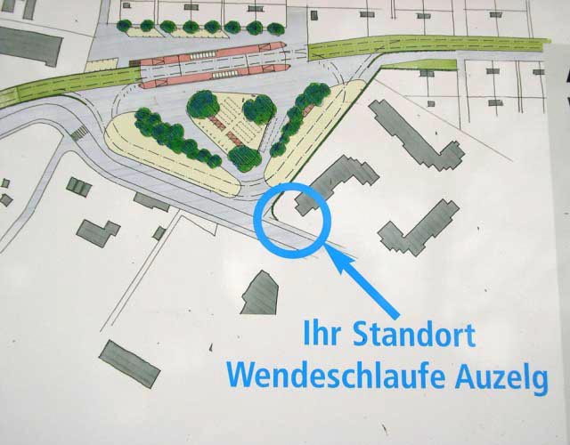 At the next stop (Ambassador / Glattpark) the triangle that will connect the phase 2 line to the airport has been built. The ground along the entire length of phase one is levelled and prepared for track laying. The Auzelg terminus will be realised as two concentric loops allowing trams from both directions to be turned. Only the through lines will have platforms and there is no holding loop to allow trams to overtake. I wonder how this will be operated in practice when route 11 terminates here and route C runs through (as the published plans suggest will happen when all three phases are complete). At least a platform on the loop track would be useful to permit passengers to alight without blocking the departure platform. View pictures of current state of works